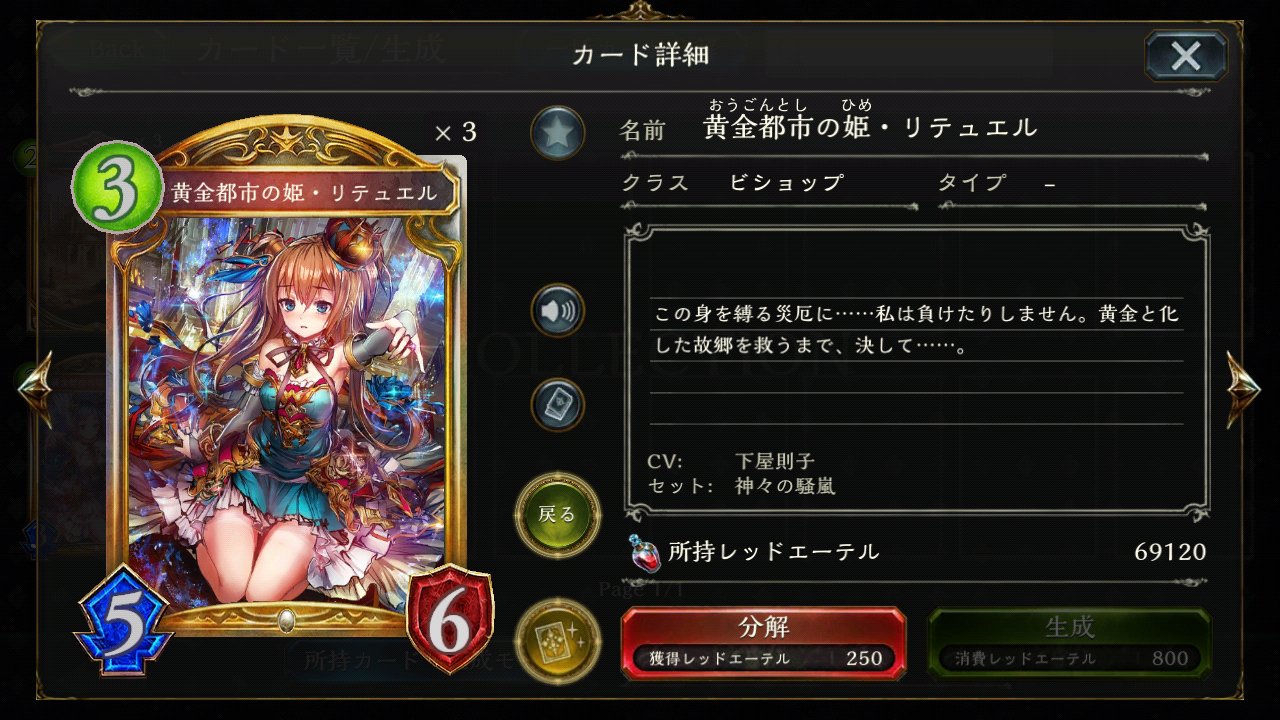 Apr 07, 17 · シャドウバースの新パック「神々の騒嵐/tempest of the gods」に実装されるカード「黄金都市の姫・リテュエル」の先行評価です。カード考察や相性の良いデッキを掲載しています。21年05月31日 1225 機能追加 編集画面で画像をアップロードできる機能を追加 21年05月12日 1735 改善 最新のお知らせを編集画面と管理画面のダッシュボードに表示Mar 19, 19 · 黄金都市の姫・リテュエル 攻撃時 自分の場に他のフォロワーがいるならランダムな自分の他のフォロワー1体に、いないなら自分のリーダーに2ダメージ。 進化前と同じ能力。 どうか、私の側から離れてください。 私は、災厄の姫。 私に近付けば